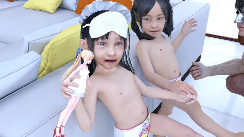 最初にご奉仕するおち〇ちんは園長先生の親友、「絢哉」のモノ。園長とサイズの大きさを競争しているち〇ちんだけに小さなふたりにとってはビッグより大きいサイズ… イカ臭いことを依菜ちゃんに馬鹿にされながら愛莉ちゃんがしゃぶりつきます。