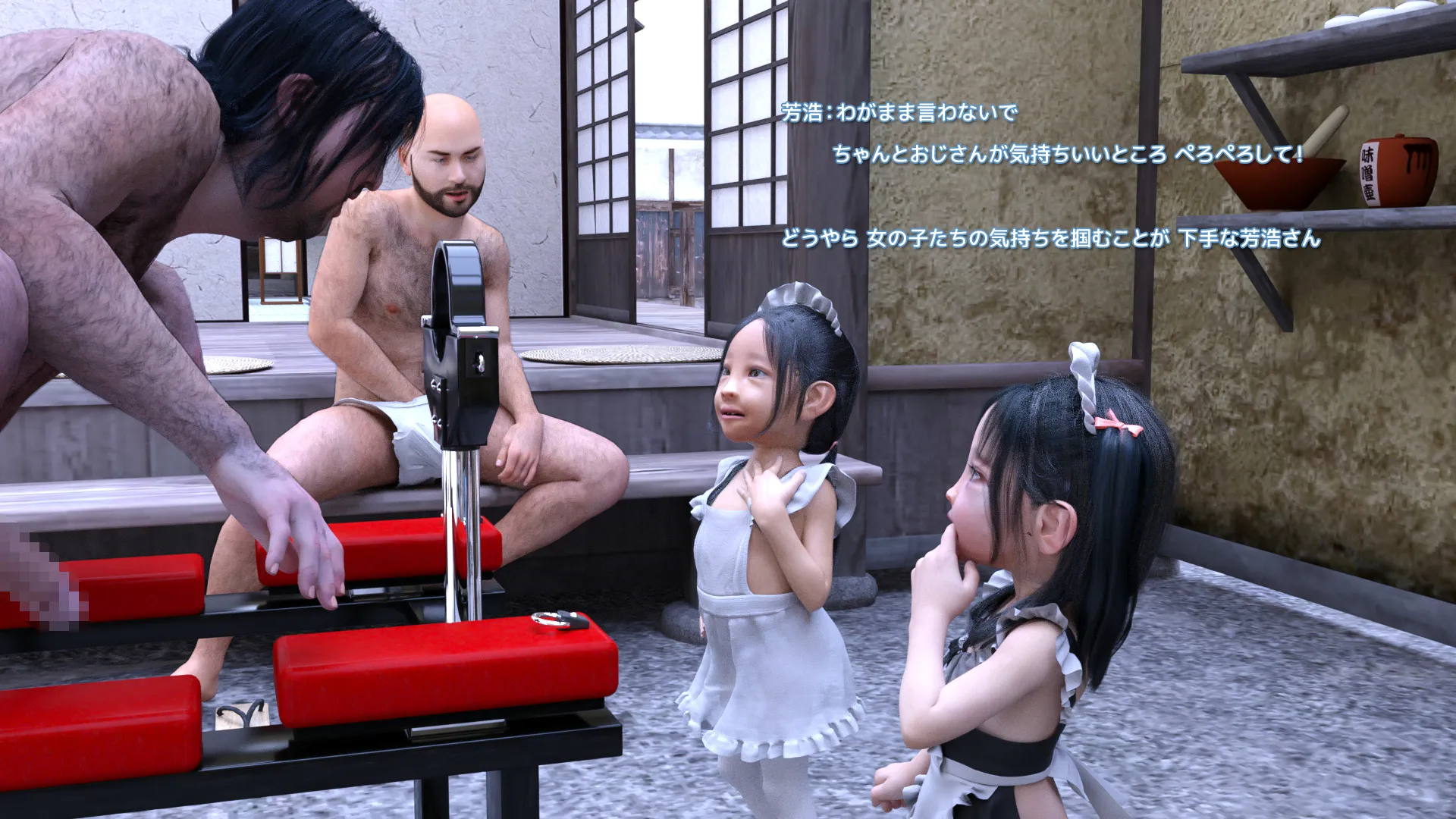 シリーズ3弾(姫祭村お泊りパート1)で学長と絢哉でス〇トロ4P遊びを楽しんでいたところ ス〇トロ大好きM男の志鶴と芳浩がお泊り会Hに参加。メイド服を着たふたりの女の子がたっぷりキモおやじにご奉仕してくれるのです。