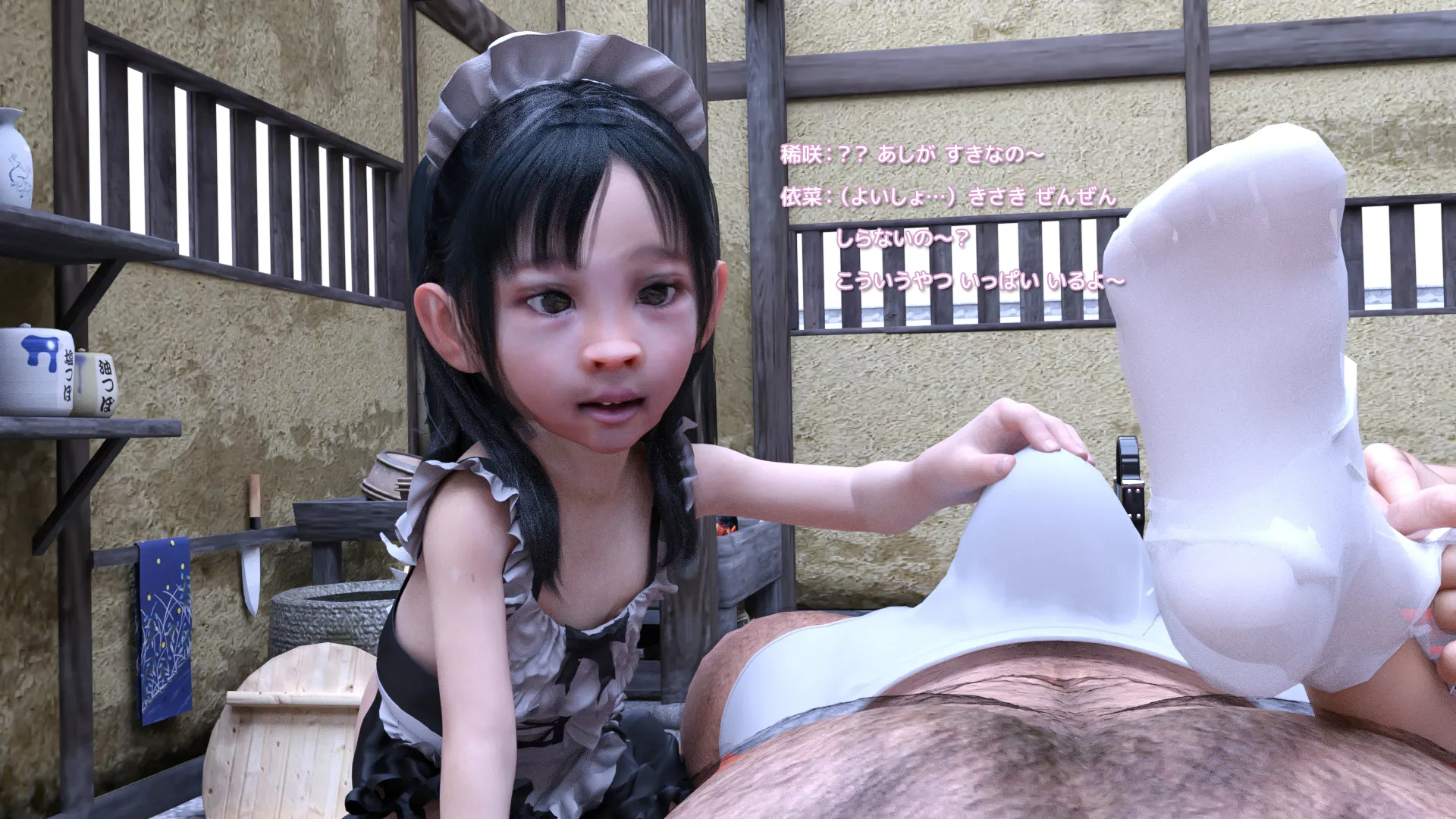 大好物の女児糞をたっぷり足でこすりつけてくれる依菜ちゃん。彼氏が嫉妬していますよ。その後もアナル舐め舐めで2回目の射精もさせてくれるご奉仕メイドさん。稀咲ちゃんのう★ちも禁止されているロングディルドでほじり出し♡ 姫祭村お泊り会は毎日精液が枯渇します。